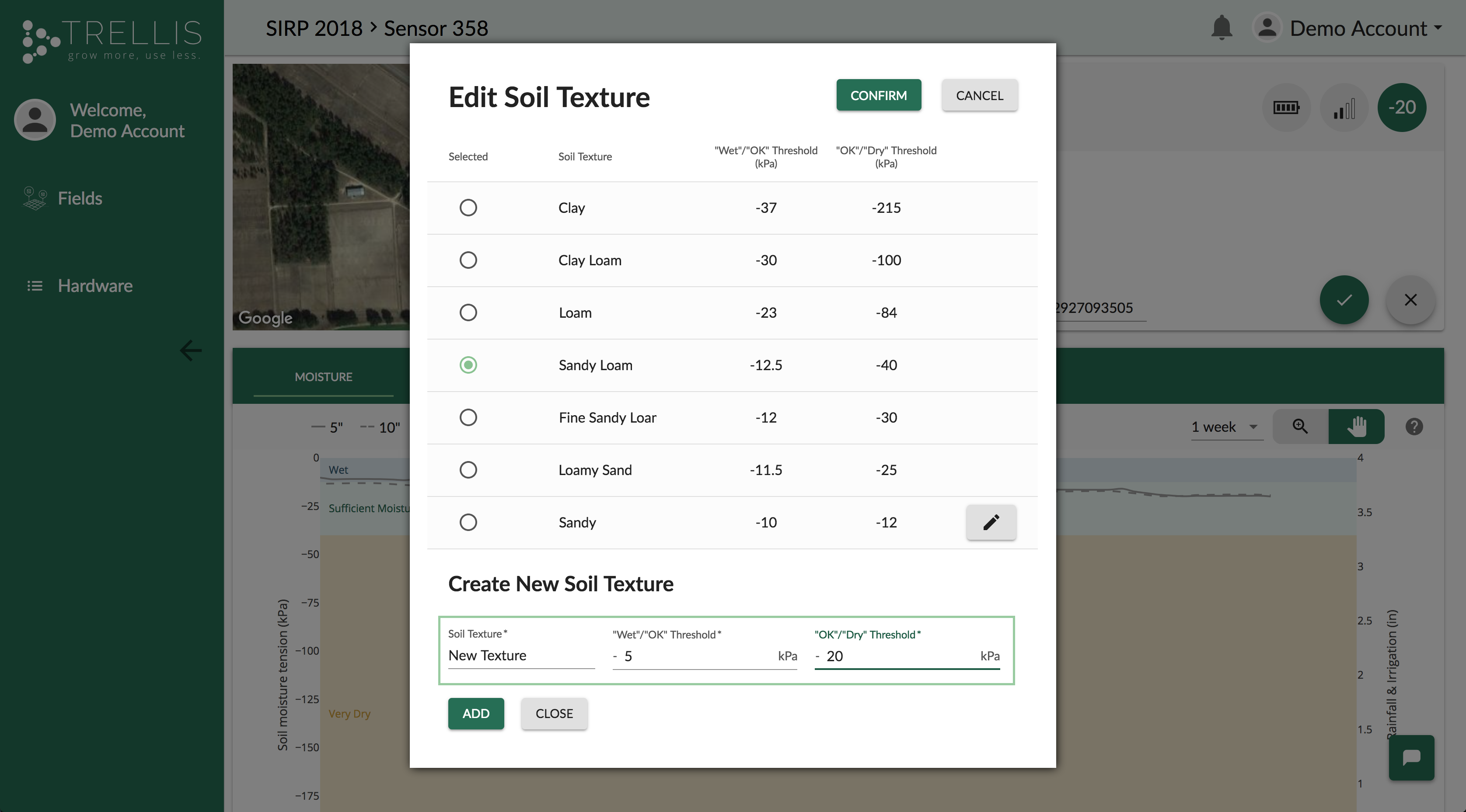 Click "Add" to add the new soil texture.