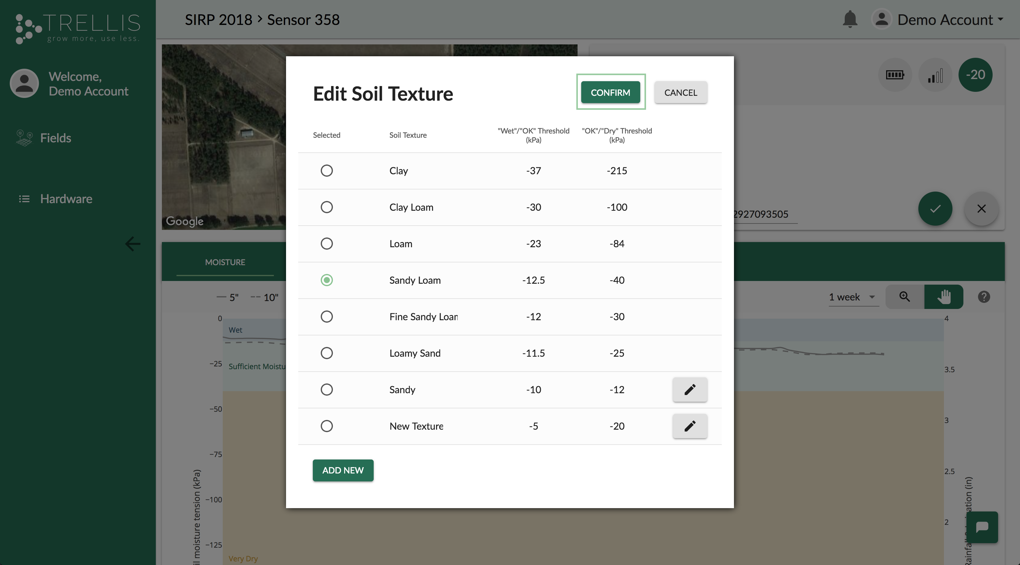 Navigate to the sensor page where you'd like to create a custom soil type: